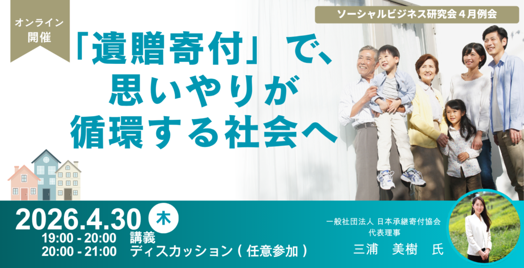 今年度初となる4月例会は、「一般社団法人 日本承継寄付協会」の代表理事である、三浦 美樹氏にご登壇いただきます。